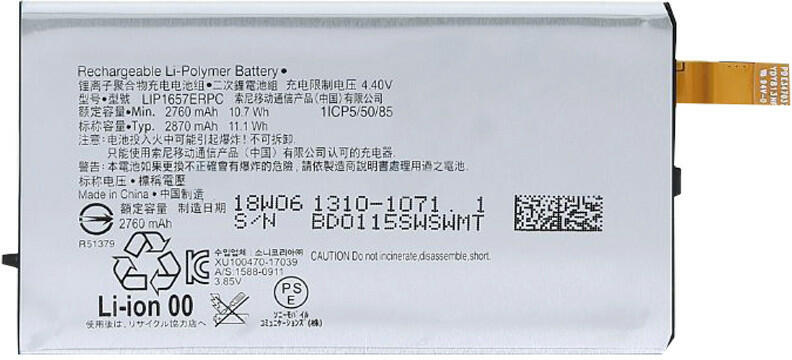 Információk Sony LIP1657ERPC gyári akkumulátor Li-Ion 2870mAh (Sony H8266 Xperia XZ2)