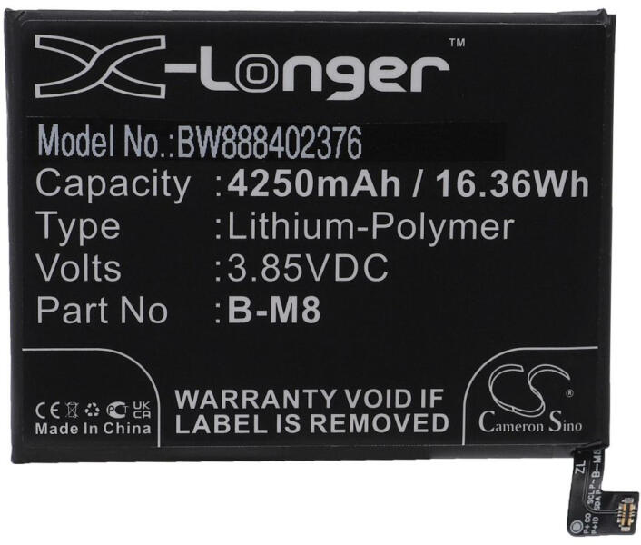 Ez egy teljes értékű és minőségi csere az eredeti akkumulátor helyett. Az akkumulátort a készülékhez tervezett eredeti vagy kompatibilis töltővel töltheti fel. Az akkumulátor egy szép, kiváló minőségű műanyag tokban van csomagolva. Kapacitásvesztés elleni garancia meghosszabbítása 6 hónapról 12 hónapra Az akkumulátor gyártója, a Cameron Sino áll termékei kiváló