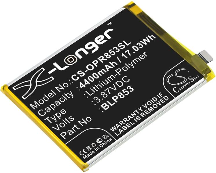 Akkumulátor Cameron Sino CS-OPR853SL Kompatibilitás: Oppo Cph2113 Oppo Cph2205 Oppo Reno 4 4g Oppo Reno 5 LiteEAN: 4894128177692 Feszültség: 3.87 V Típus: Li-Polymer Kapacitás: 4400 mAh Energia: 17.03 Wh Magasság: 86 mm Szélesség: 62 mm Mélység: 5 mm Súly csomagolás nélkül: 61 g Súly csomagolással együtt: 111 g