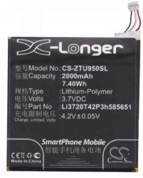ZTE Li3720T42P3h585651 3.7V 2000mAh utángyártott akku Li-PolymerKompatibilis akkumulátor és készülék típusok:ZTE Li3720T42P3h585651Kompatibilis készülék típusok:ZTE Blade Super, ZTE Grand X...