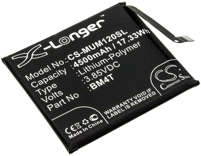 Akkumulátor Cameron Sino CS-MUM120SL Kompatibilitás: Xiaomi 10x Pro 5g Xiaomi M2004j7bc Xiaomi Redmi 10x ProEAN: 4894128156635 Feszültség: 3.85 V Típus: Li-Polymer Kapacitás: 4500 mAh Energia: 17.33 Wh Magasság: 73 mm Szélesség: 64 mm Mélység: 5 mm Súly csomagolás nélkül: 58 g Súly csomagolással együtt: 108 g