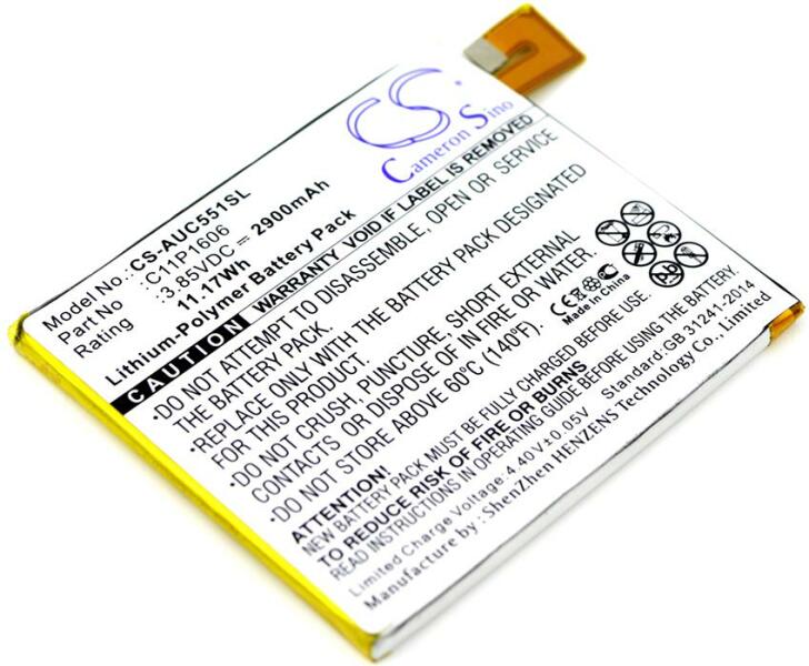 Akkumulátor Cameron Sino CS-AUC551SL Kompatibilitás: Asus Zc551kl Asus Zenfone 3 LaserEAN: 4894128119081 Feszültség: 3.85 V Típus: Li-Polymer Kapacitás: 2900 mAh Energia: 11.17 Wh Magasság: 72 mm Szélesség: 62 mm Mélység: 4 mm Súly csomagolás nélkül: 39 g Súly csomagolással együtt: 64 g
