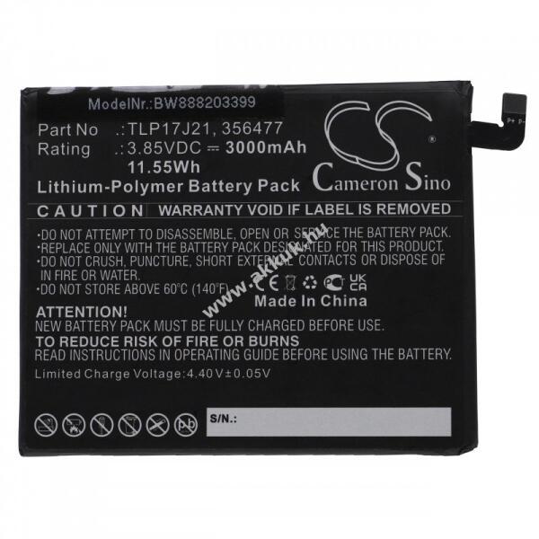 Feszültség: 3.85V - Teljesítmény: 3000mAh - Típus: Li-Po - kompatibilis modellek: Wiko M1790 Wiko View XL - kompatibilis típusok: Wiko 356477 Wiko TLP17J21
