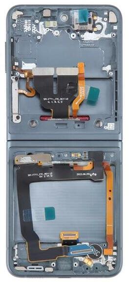 Gyári Samsung Galaxy Z Flip3 5G zöld LCD kijelző érintővel kerettel előlap Zöld, Eredeti gyári, 1 év, Szervizünkben, Samsung, Előlap, lcd keret, Kijelző érintővel, Érintő (touch, digitizer), Keret