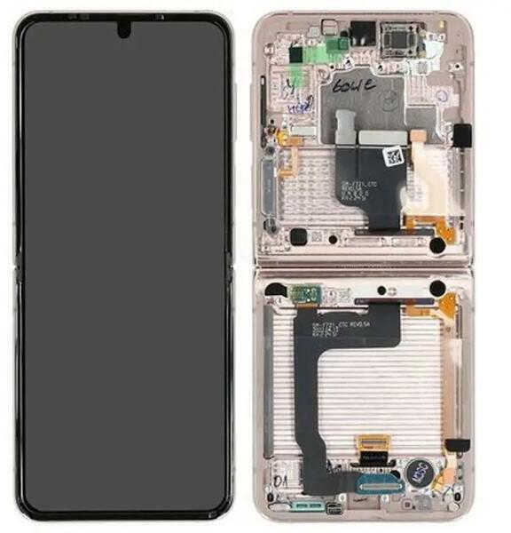 Gyári Samsung Galaxy Z Flip4 OLED kijelző érintővel Rózsa arany kerettel előlap Eredeti gyári, 1 év, Szervizünkben, Samsung, Előlap, lcd keret, Kijelző érintővel, Érintő (touch, digitizer), OLED, Arany