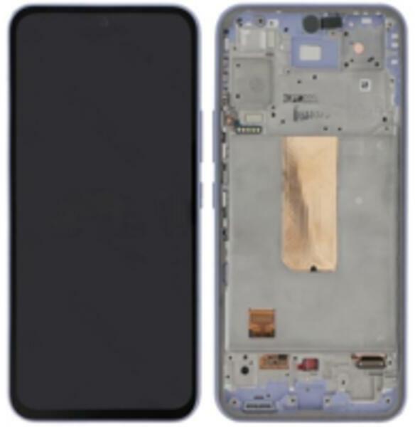 Gyári Samsung Galaxy A54 OLED kijelző érintővel Ibolya kerettel előlap Eredeti gyári, 1 év, Szervizünkben, Samsung, Előlap, lcd keret, Kijelző érintővel, Érintő (touch, digitizer)
