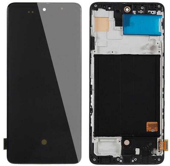 Samsung Galaxy A51 OLED kijelző érintővel fekete kerettel előlap Fekete, Utángyártott, 1 év, Szervizünkben, Előlap, lcd keret, Kijelző érintővel, Érintő (touch, digitizer), OLED, Keret