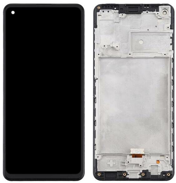 Samsung Galaxy A21s LCD kijelző érintővel fekete kerettel előlap Fekete, Utángyártott, 1 év, Szervizünkben, Előlap, lcd keret, Kijelző érintővel, Érintő (touch, digitizer)