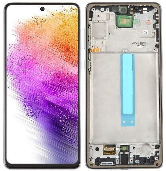 Samsung Galaxy A73 5G OLED kijelző érintővel fekete kerettel előlap Fekete, Utángyártott, 1 év, Szervizünkben, Előlap, lcd keret, Kijelző érintővel, Érintő (touch, digitizer), OLED, Keret