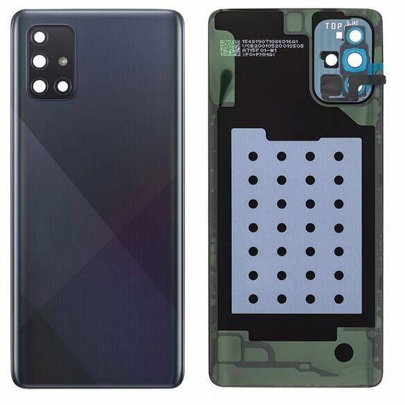 Samsung Galaxy A71 Fekete akkufedél, hátlap, hátlapi kamera lencse Fekete, Akkufedél, hátlap, Hátlapi kamera, Kamera lencse, Kamera lencse kerettel, Keret, Hátlapi kamera lencse kerettel, Burkolati elem, Kamera