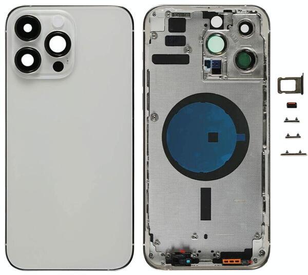Apple iPhone 14 Pro Max EU Ver Ezüst akkufedél hátlap - burkolati elem oldalsó gombokkal Ezüst, Akkufedél, hátlap, Oldalsó gombok, Burkolati elem, Elektronikai alkatrész