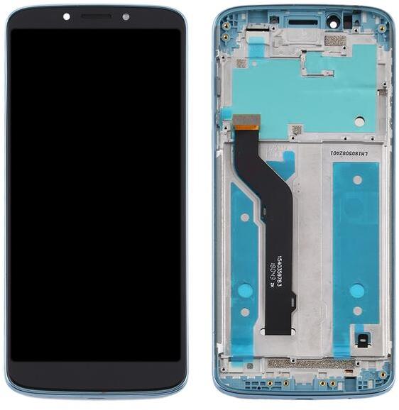 Motorola Moto E5 Plus kék LCD kijelző érintővel kerettel előlap Kék, Utángyártott, 1 év, Szervizünkben, Előlap, lcd keret, Kijelző érintővel, Érintő (touch, digitizer)