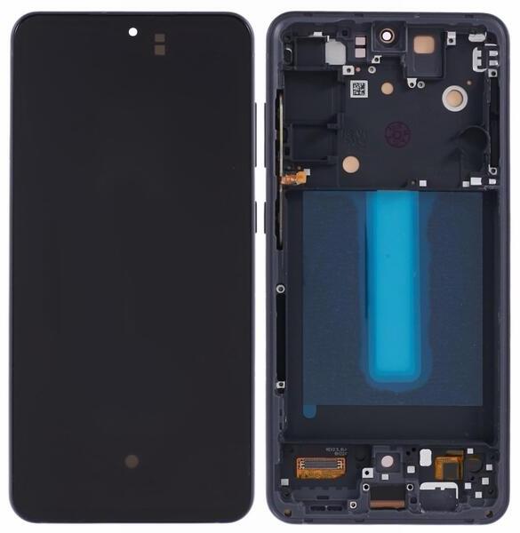 Samsung Galaxy S21 FE OLED kijelző érintővel Fekete (Graphite) kerettel, előlap Fekete, Utángyártott, 1 év, Szürke, Előlap, lcd keret, Kijelző érintővel, Érintő (touch, digitizer), OLED, Keret