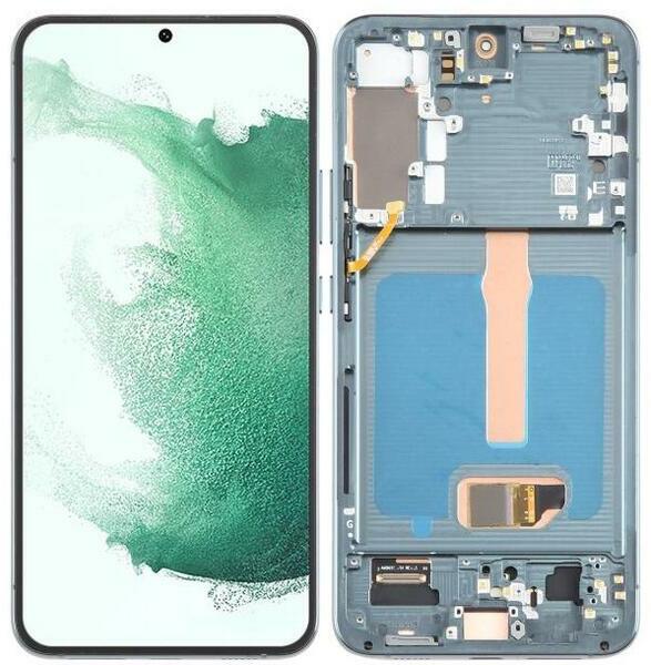 Samsung Galaxy S22 Plus 5G OLED kijelző érintővel Zöld kerettel előlap Zöld, Utángyártott, 1 év, Szervizünkben, Előlap, lcd keret, Kijelző érintővel, Érintő (touch, digitizer), OLED, Keret