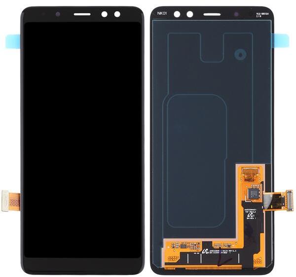 Samsung Galaxy A5 (2018) / A8 (2018) / A530 fekete LCD kijelző érintővel Fekete, Utángyártott, 1 év, Kijelző érintővel, Érintő (touch, digitizer)