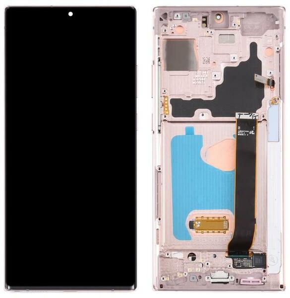 Samsung Galaxy Note20 Ultra / Note20 Ultra 5G OEM AMOLED kijelző érintővel arany kerettel előlap 1 év, Szervizünkben, OEM, Előlap, lcd keret, Kijelző érintővel, Érintő (touch, digitizer), Keret, Arany
