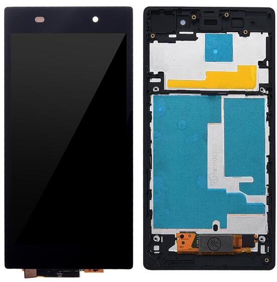 Sony Xperia Z1 / C6902 / C6903 / C6906 / C6943 / L39h fekete LCD kijelző érintővel kerettel előlap Fekete, Utángyártott, 1 év, Szervizünkben, Előlap, lcd keret, Kijelző érintővel, Érintő (touch, digitizer)