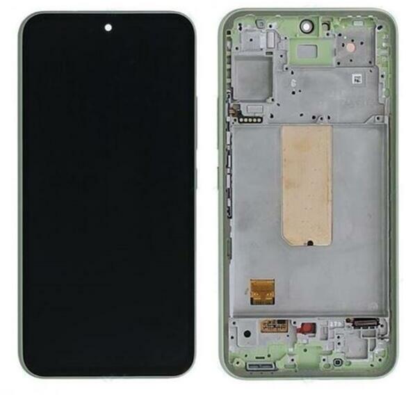 Samsung Galaxy A54 Zöld OLED kijelző érintővel kerettel előlap Zöld, Utángyártott, 1 év, Szervizünkben, Előlap, lcd keret, Kijelző érintővel, Érintő (touch, digitizer), OLED, Keret