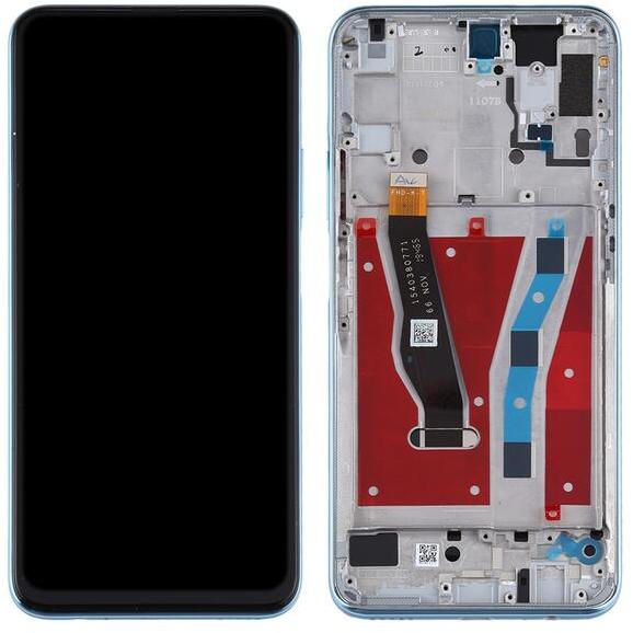 Huawei P smart Pro 2019 jégkristály kék LCD kijelző érintővel kerettel előlap Kék, Utángyártott, 1 év, Szervizünkben, Előlap, lcd keret, Kijelző érintővel, Érintő (touch, digitizer)