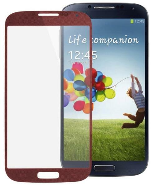 Samsung Galaxy S4 I9500 üveg előlap - kijelző részegység piros szervizalkatrész Piros, Utángyártott, 1 év, Előlap, lcd keret, Kijelző érintővel, Érintő (touch, digitizer)