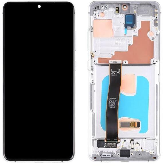 Gyári Samsung Galaxy S20 Ultra fehér OLED kijelző érintővel kerettel előlap kamerával Eredeti gyári, 1 év, Szervizünkben, Samsung, Fehér, Előlap, lcd keret, Kijelző érintővel, Érintő (touch, digitizer)
