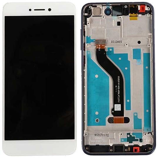 Huawei P8 Lite (2017) / P9 Lite (2017) fehér LCD kijelző érintővel kerettel előlap Utángyártott, 1 év, Szervizünkben, Fehér, Előlap, lcd keret, Kijelző érintővel, Érintő (touch, digitizer)