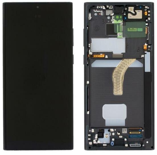 Gyári Samsung Galaxy S22 Ultra 5G OLED kijelző érintővel fekete kerettel előlap Fekete, Eredeti gyári, 1 év, Szervizünkben, Samsung, Előlap, lcd keret, Kijelző érintővel, Érintő (touch, digitizer), Keret