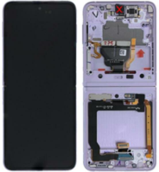 Gyári Samsung Galaxy Z FLIP3 5G OLED kijelző érintővel Levendula kerettel előlap Eredeti gyári, 1 év, Szervizünkben, Samsung, Előlap, lcd keret, Kijelző érintővel, Érintő (touch, digitizer), Levendula színű