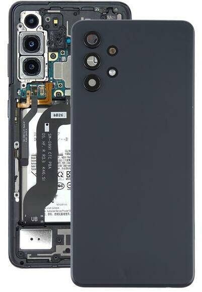 Samsung Galaxy A32 fekete akkufedél, hátlap, hátlapi kamera lencse Fekete, Akkufedél, hátlap, Hátlapi kamera, Kamera lencse, Kamera lencse kerettel, Keret, Hátlapi kamera lencse kerettel, Burkolati elem, Kamera