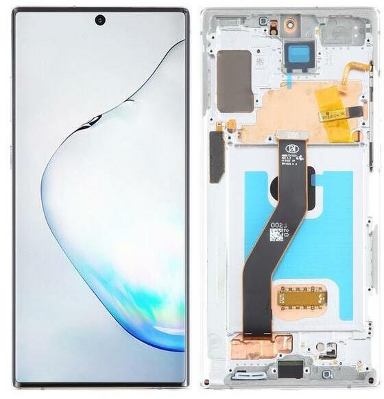 Samsung Galaxy Note10 Plus OLED kijelző érintővel Ezüst kerettel előlap Ezüst, Utángyártott, 1 év, Szervizünkben, Előlap, lcd keret, Kijelző érintővel, Érintő (touch, digitizer), OLED, Keret