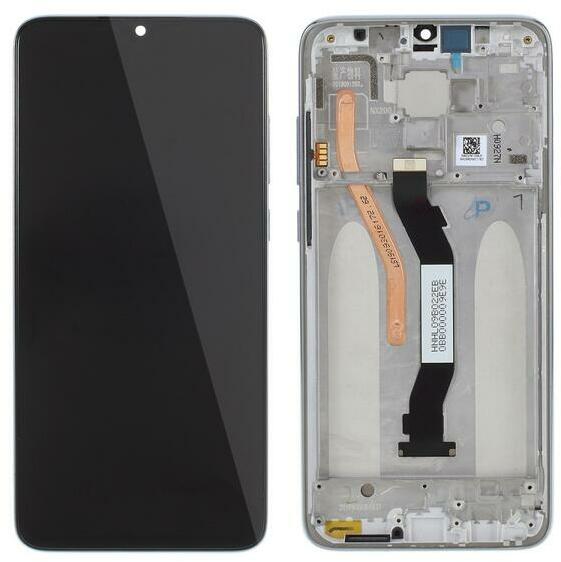 Xiaomi Redmi Note 8 Pro ezüst LCD kijelző érintővel kerettel előlap Ezüst, Utángyártott, 1 év, Szervizünkben, Előlap, lcd keret, Kijelző érintővel, Érintő (touch, digitizer)
