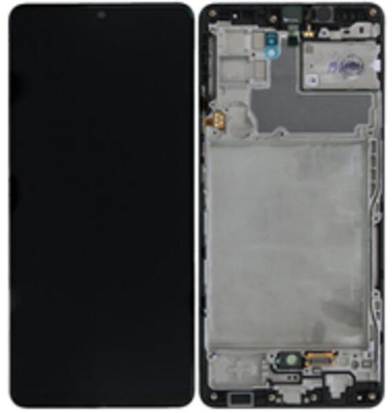 Samsung Galaxy A42 OLED kijelző érintővel fekete kerettel, előlap Fekete, Utángyártott, 1 év, Szervizünkben, Előlap, lcd keret, Kijelző érintővel, Érintő (touch, digitizer), OLED