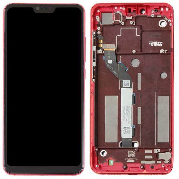 Xiaomi Mi 8 Lite piros LCD kijelző érintővel kerettel előlap Piros, Utángyártott, 1 év, Szervizünkben, Előlap, lcd keret, Kijelző érintővel, Érintő (touch, digitizer)