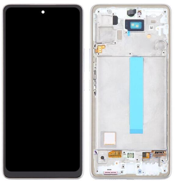 Samsung Galaxy A53 5G OLED kijelző érintővel Fehér kerettel, előlap Utángyártott, 1 év, Fehér, Előlap, lcd keret, Kijelző érintővel, Érintő (touch, digitizer), OLED, Keret