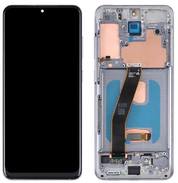Samsung Galaxy S20 5G OEM fehér (ezüst) OLED kijelző érintővel kerettel előlap Ezüst, 1 év, Samsung, Fehér, OEM, Előlap, lcd keret, Kijelző érintővel, Érintő (touch, digitizer)