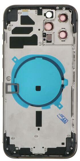 Apple iPhone 12 Pro Max fekete Középső keret, hátlap, hátsó kamera lencse, oldalsó gombok SIM kártya tálca Fekete, Akkufedél, hátlap, Középső keret, Kamera lencse, SIM, SD kártya tálca, Oldalsó gombok, SIM Kártya tálca, Burkolati elem, Kamera, Elektronikai alkatrész