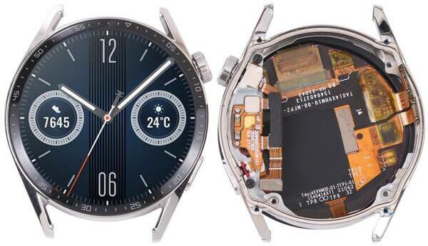 Gyári Huawei Watch GT 3 46mm ezüst LCD kijelző érintővel Ezüst, Eredeti gyári, 1 év, Huawei, Kijelző érintővel, Érintő (touch, digitizer)