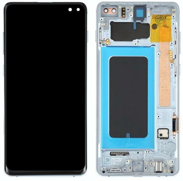 Samsung Galaxy S10 Plus kék LCD kijelző érintővel kerettel előlap Kék, Utángyártott, 1 év, Szervizünkben, Előlap, lcd keret, Kijelző érintővel, Érintő (touch, digitizer), Keret