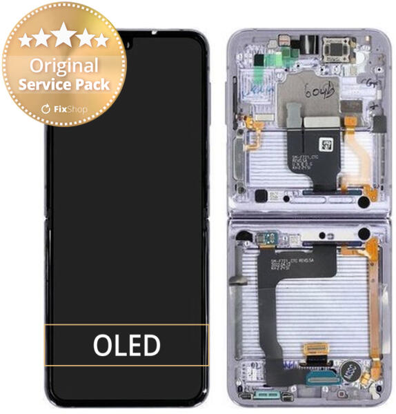 LCD Kijelző + Érintőüveg + Keret Samsung Galaxy Z Flip 4 F721B modellhez Megsérült a Samsung Galaxy Z Flip 4 F721B készülék LCD kijelzője vagy érintőüvege? Akko ez az a pótalkatrész, amire szüksége van. Segítségével a hiba orvosolható, az eredeti funkció visszaállítható. Pótalkatrészek minősége Minőség: Original Service Pack - a kijelző eredeti, azaz a készülék g