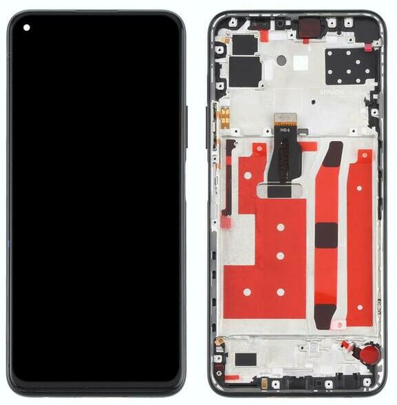 Huawei P40 lite 5G fekete LCD kijelző érintővel kerettel előlap Fekete, Utángyártott, 1 év, Szervizünkben, Előlap, lcd keret, Kijelző érintővel, Érintő (touch, digitizer), Keret