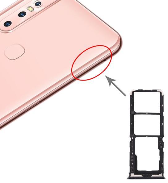 Vivo Y7s fekete SIM & SD kártya tálca Fekete, SIM, SD kártya tálca, SIM Kártya tálca, Burkolati elem