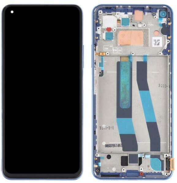 Xiaomi Mi 11 Lite M2101K9AG kék OEM LCD kijelző érintővel kerettel, előlap Kék, 1 év, Szervizünkben, OEM, Előlap, lcd keret, Kijelző érintővel, Érintő (touch, digitizer), Keret