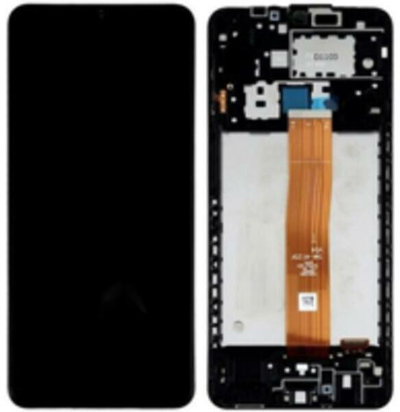 Gyári Samsung Galaxy A12 Nacho LCD kijelző érintővel fekete kerettel előlap Fekete, Eredeti gyári, 1 év, Szervizünkben, Samsung, Előlap, lcd keret, Kijelző érintővel, Érintő (touch, digitizer), Keret