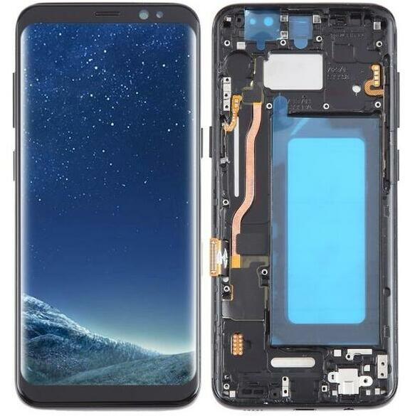 Samsung Galaxy S8 TFT LCD kijelző érintővel Fekete kerettel, előlap Fekete, Utángyártott, 1 év, Előlap, lcd keret, Kijelző érintővel, Érintő (touch, digitizer), TFT, Keret