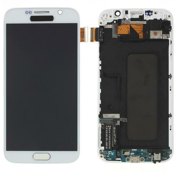 Samsung Galaxy S6 fehér TFT LCD kijelző érintővel kerettel előlap Utángyártott, 1 év, Fehér, Előlap, lcd keret, Kijelző érintővel, Érintő (touch, digitizer)