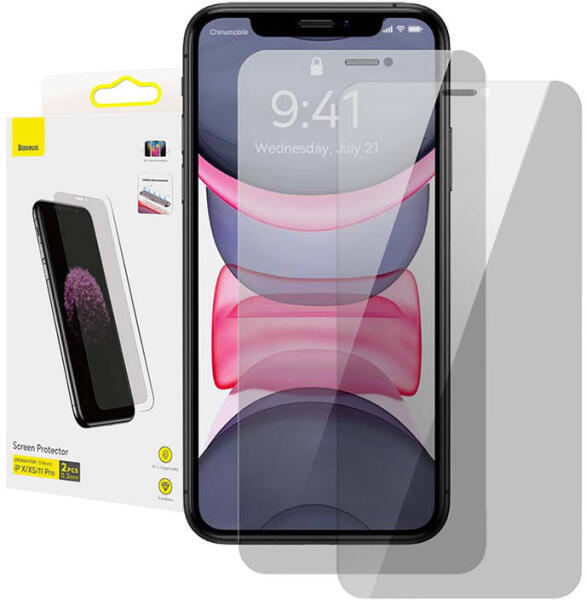 Baseus 0,3mm-es edzett üvegfólia iPhone X/XS/11 Pro készülékhez (2 db) Gondoskodjon okostelefonja biztonságáról! A Baseus edzett üvegét mindössze 0,3 mm vastagság jellemzi, és rendkívül tartós. Tökéletesen megvédi telefonja képernyőjét és tökéletesen illeszkedik az iPhone X, XS és 11 Pro készülékekre, nem befolyásolja a használat kényelmét és nagyon könnyen felra