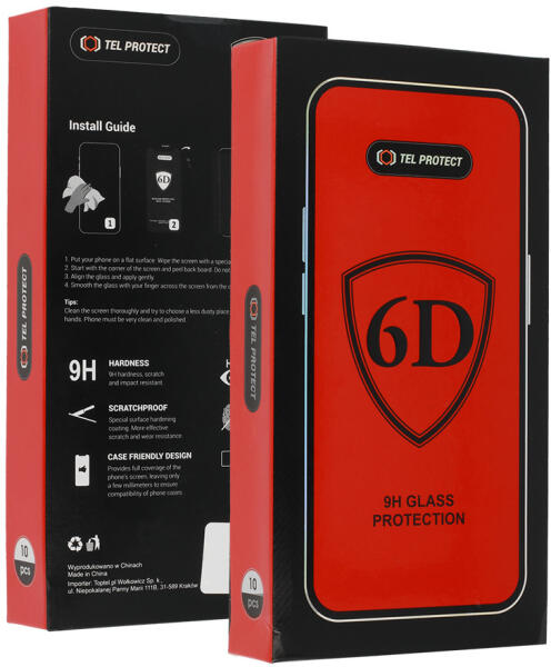 A 6D edzett üveg olyan termék, amely megvédi az okostelefonok képernyőjét a töréstől és a karcolástól. A 6D sorozatot kristálytiszta szerkezet, 0,40 mm vastagság és 9H keménység jellemzi. Ezenkívül az edzett üveg keretei a kijelző méretéhez és profiljához igazodnak. A termék precíz gyártása megakadályozza, hogy az üveg kilógjon, vagy a keret eltakarja a képernyőt.