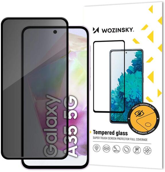 Wozinsky Privacy edzett üvegfólia kémvédelmi szűrővel Samsung Galaxy A35-höz. Unod már a kíváncsi pillantásokat az utastársaidtól a villamoson vagy buszon? A Wozinsky Privacy Glass kémvédelmi szűrővel ellátott edzett üvegfólia segítségével többé nem kell aggódnod emiatt! Védd okostelefonod képernyőjét az esésektől és karcolásoktól, miközben megóvod a magánéle