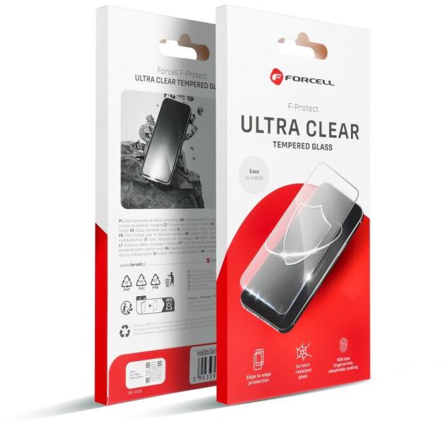 Az Ultra Clear by Forcell a legmagasabb minőséget képviselő kijelzővédelem. Magas átlátszóságú, tartós és karcálló edzett üveg. Emellett dupla oleofób bevonattal rendelkezik, amely minimalizálja az ujjlenyomatok megjelenését. Magas átlátszóság Kivételesen átlátszó, teljes színvisszaadást biztosít anélkül, hogy befolyásolná a megjelenített képek minőségét. Ez