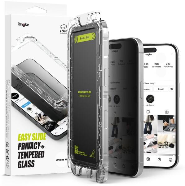 A kiváló minőségű Ringke Easy Slide edzett üveg védőszűrő funkcióval tökéletes módja annak, hogy megvédje a képernyőt a sérülésektől, valamint csökkentse annak láthatóságát az idegen szemek elől. A polarizációs szűrő 28°-os szögben korlátozza a képernyő láthatóságát, míg 40°-os szögben teljesen blokkolja azt. Az üveg keménysége 9H, ami elegendő érté
